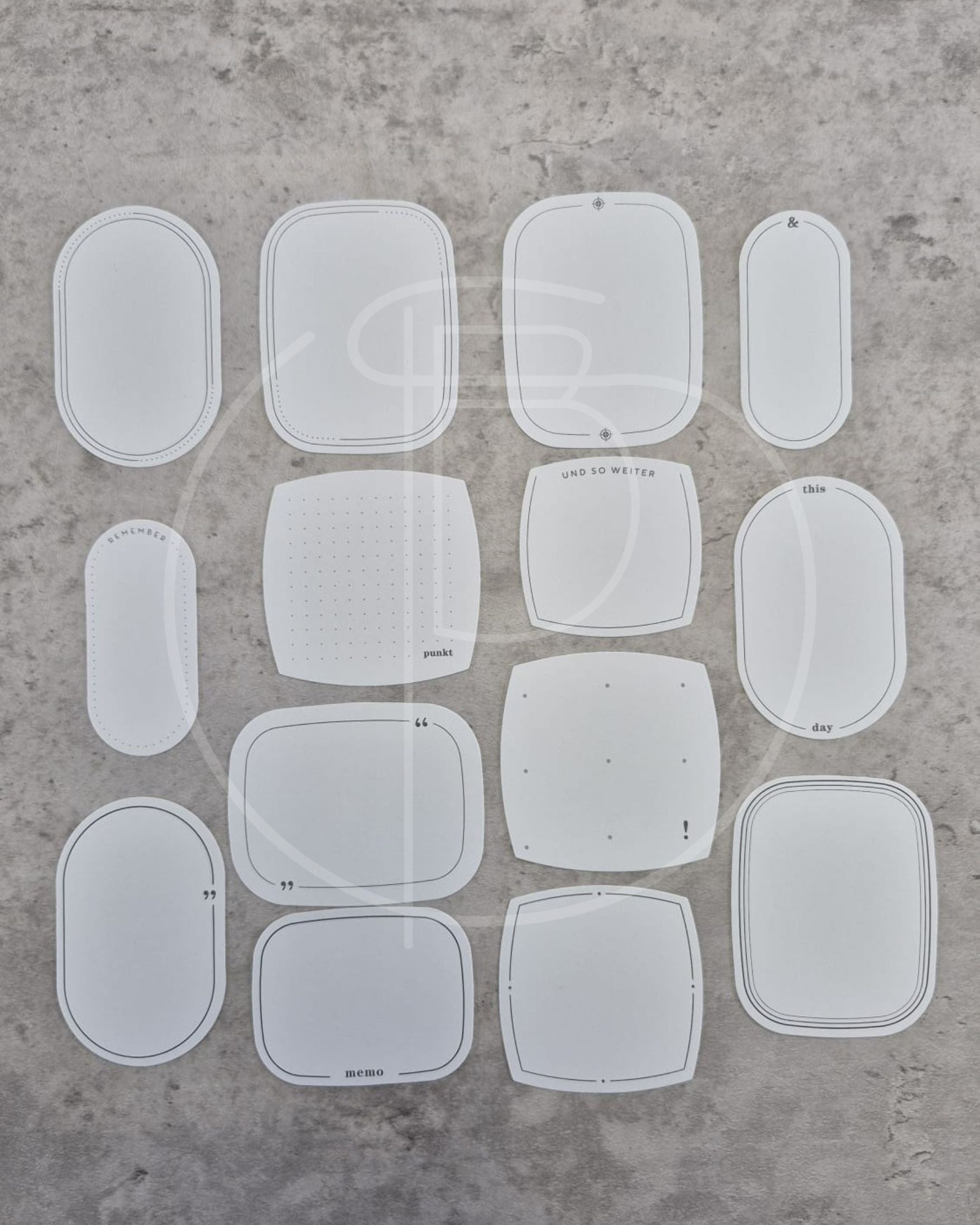 - 14 dezent bedruckte Ephemera Etiktten von Alexandra Renke