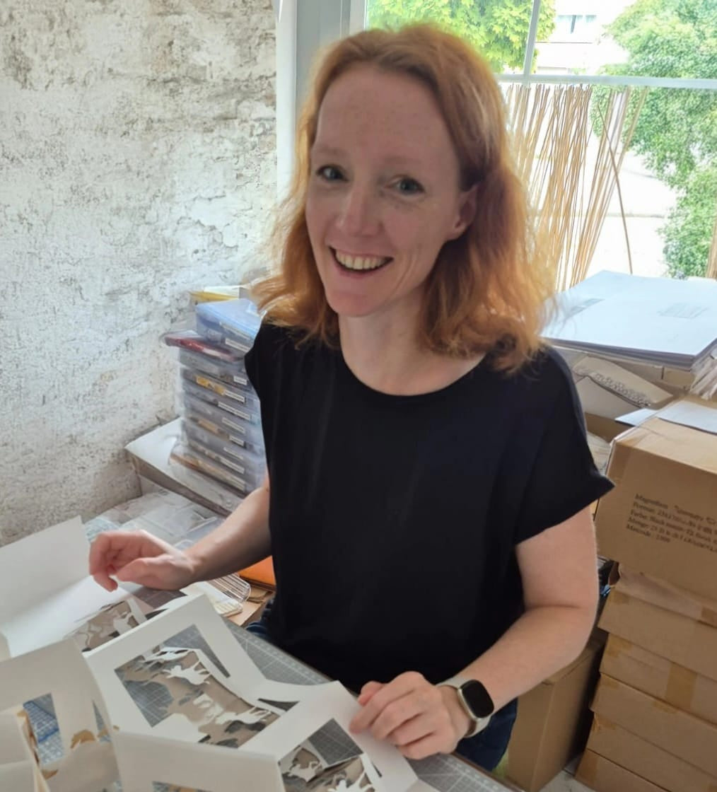 Ich bin Gitti, die Gründerin der Papierwerkstatt. In meiner Werkstatt in Neuendettelsau habe ich einst als Keramikerin im Kachelofenbau gearbeitet, an der Drehscheibe, mit Lehm, Feuer und einer tiefen Verbindung zu Form, Wärme und Handwerk.
